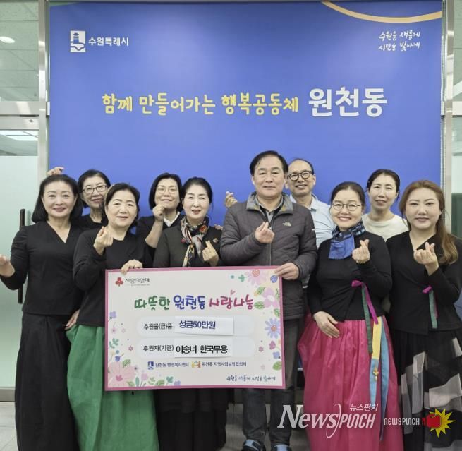 이번 성금은 한국무용반 강사와 수강생들이 자발적으로 뜻을 모아 마련한 것으로, 지역 내 어려운 이웃들에게 따뜻한 연말을 선물하고자 하는 마음이 담겼다.