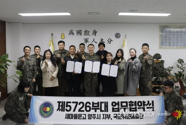 뉴스펀치 김길룡 기자 | 새마을문고 양주시지부는 지난 12월 19일, 육군 제5726부대에서 군 장병들의 독서문화 확산과 인문학적 소양 증진을 위한 업무협약(MOU)을 체결했다고 밝혔다.