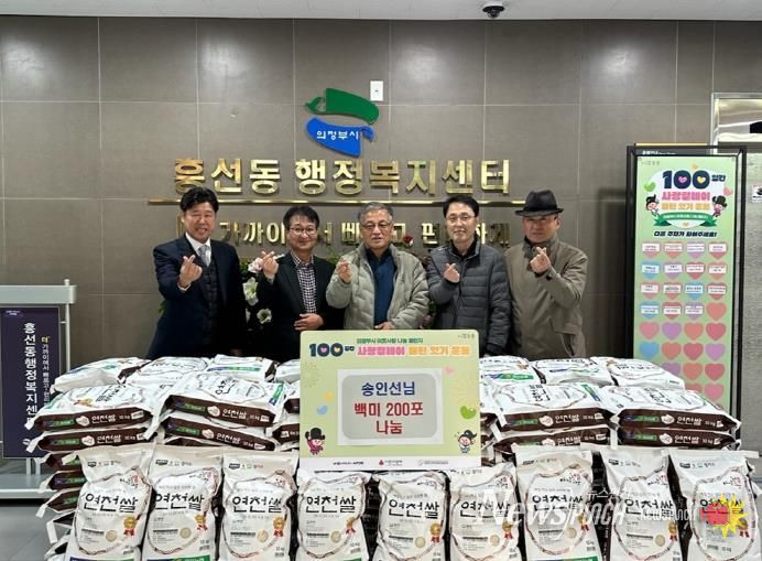 뉴스펀치 김길룡 기자 | 의정부시 흥선동행정복지센터는 12월 18일 송인선 세무사가 ‘100일간 사랑릴레이 배턴 잇기’에 동참해 백미 200포(10kg 단위)를 기탁했다고 밝혔다.