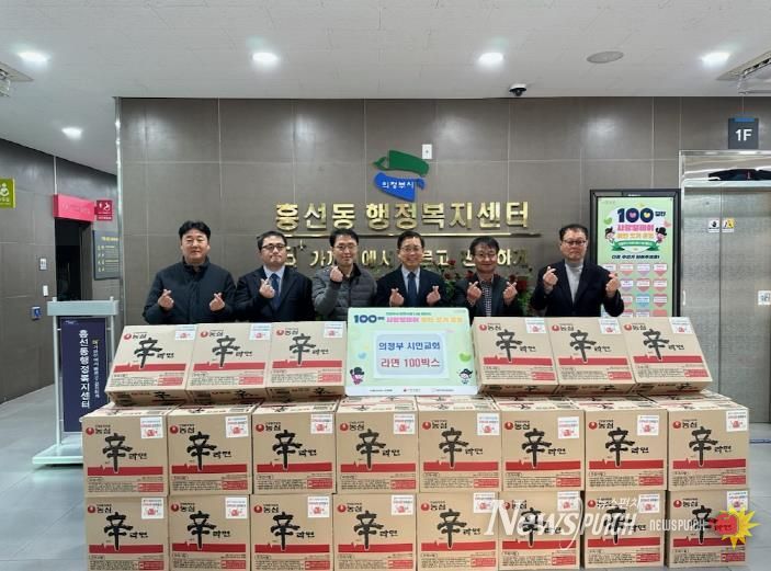 뉴스펀치 김길룡 기자 | 의정부시 흥선동행정복지센터는 12월 18일 의정부시민교회가 ‘100일간 사랑릴레이 배턴 잇기’에 동참해 라면 100상자를 기탁했다고 밝혔다.