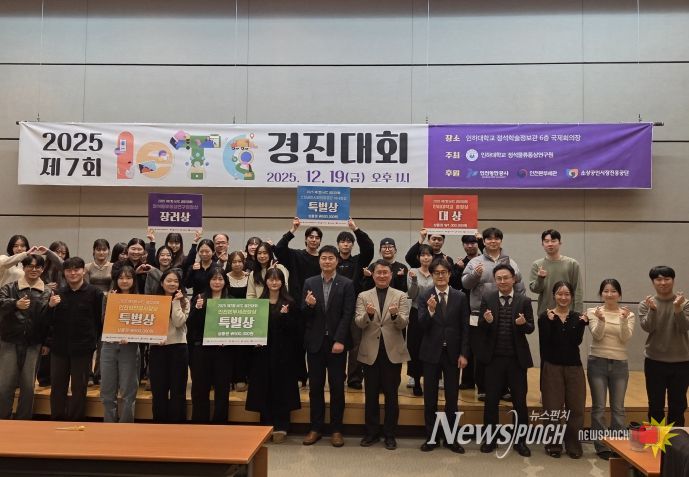 뉴스펀치 김길룡 기자 | 인천항만공사(사장 이경규)는 지난 19일 인하대학교 정석학술정보도서관(인천광역시 미추홀구 인하로 100)에서 인하대학교 재학생 대상 ‘2025년 제7회 전자상거래(IeTC) 경진대회’를 공동 개최하고 우수 팀에게 기관장상을 시상했다고 밝혔다.