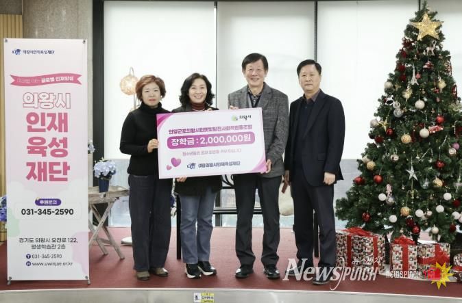 뉴스펀치 김길룡 기자 | 의왕시인재육성재단가 12월 19일 안양군포의왕시민햇빛발전 사회적협동조합으로부터 의왕시 인재육성 및 교육발전 지원을 위한 장학금 200만 원을 기탁받았다고 밝혔다.