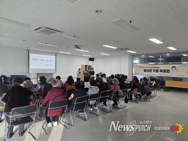 뉴스펀치 김길룡 기자 | 포천시 소흘건강생활지원센터는 지난 18일 포천시 노인복지관 남부분관 대강당에서 만 65세 이상 어르신을 대상으로 ‘노년기 올바른 약물 복용 및 관리 교육’을 실시했다.