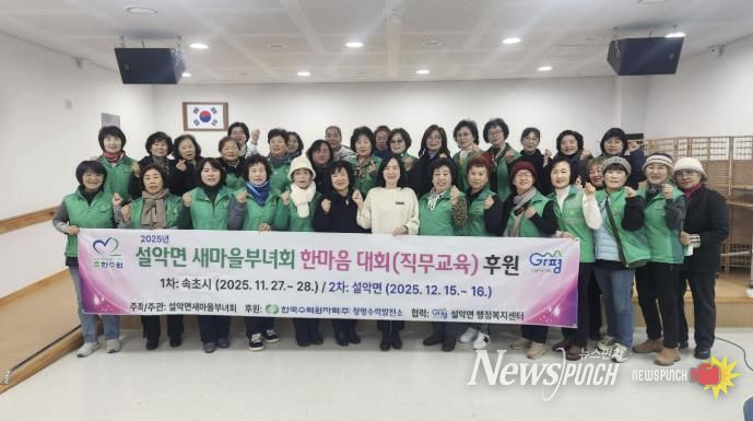뉴스펀치 김길룡 기자 | 가평군 설악면 새마을부녀회는 최근 행정복지센터에서 ‘설악면 새마을부녀회 한마음 대회’를 열고 2025년 봉사활동을 모두 마쳤다. 이번 행사는 한국수력원자력㈜ 청평수력발전소의 후원으로 마련됐다.
