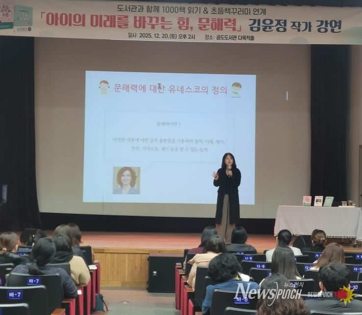 뉴스펀치 김길룡 기자 | 안성시 공도도서관은 지난 20일 오후 2시 ‘도서관과 함께 1000책 읽기’ 및 ‘초등 책꾸러미’참여자 부모와 문해력에 관심있는 시민을 대상으로 김윤정 작가 초청 강연 '아이의 미래를 바꾸는 힘, 문해력'을 개최했다.