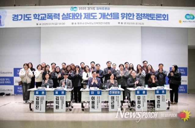 뉴스펀치 김길룡 기자 | 경기도의회 경제노동위원회 이용욱 의원(더불어민주당, 파주3)이 좌장을 맡은 '경기도 학교폭력 실태와 제도 개선을 위한 정책토론회'가 19일 오후 2시 파주운정다누림노인복지관에서 성황리에 개최됐다.