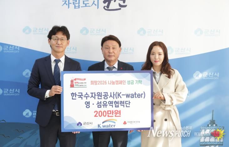 뉴스펀치 정홍균 기자 | 한국수자원공사 영·섬유역협력단이 연말을 맞아 취약계층과 따뜻한 정(情)을 나누고자 기부금 200만 원을 22일 군산시에 전달했다.