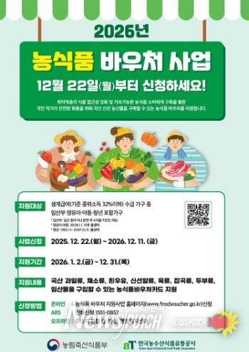 뉴스펀치 김길룡 기자 | 무안군은 2025년 12월 22일부터 2026년 농식품 바우처 지원사업 신청접수를 시작한다고 밝혔다.