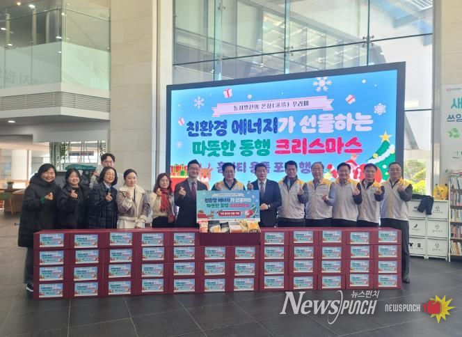 뉴스펀치 김길룡 기자 | 울산 강북교육지원청은 22일 한국동서발전㈜ 울산 본사에서 1,500만 원 상당의 크리스마스 음식 꾸러미 200세트를 전달받았다.