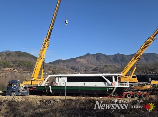 뉴스펀치 김길룡 기자 | 22일 옥천읍 수북리 안터교 인근 대청호에 친환경 전기도선 ‘정지용호’를 진수한다. 이제, 주민들의 간절한 염원인‘대청호 뱃길’ 실현이 눈앞에 다가왔다.