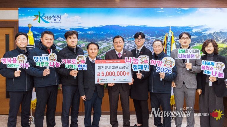 김윤철 합천군수는 “매년 나눔을 실천해주시는 합천군시설관리공단의 따뜻한 마음에 진심으로 감사드리며, 소중한 성금은 꼭 필요한 이웃에게 전달될 수 있도록 하겠다”고 감사의 마음을 전했다.