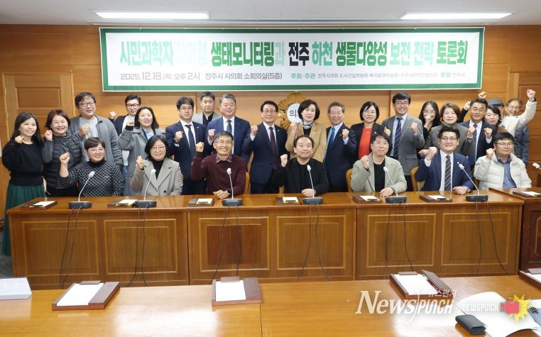 뉴스펀치 김길룡 기자 | 전주시의회는 지난 18일 의회 5층 소회의실에서 ‘전주 하천 생물다양성 보전 전략 토론회’를 열고 전주천·삼천 시민참여 생태모니터링 성과를 공유했다고 22일 밝혔다.