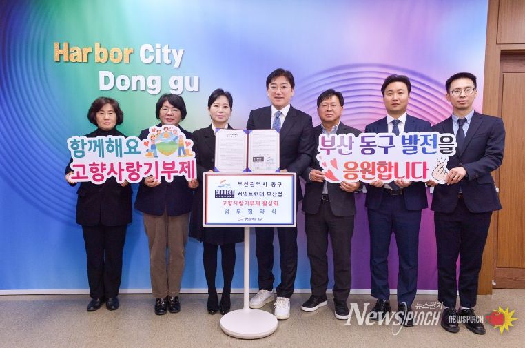 뉴스펀치 김길룡 기자 | 부산 동구는 지난 18일 커넥트현대 부산점(점장 천동욱)과 고향사랑기부제 활성화를 위한 업무협약을 체결했다고 밝혔다.