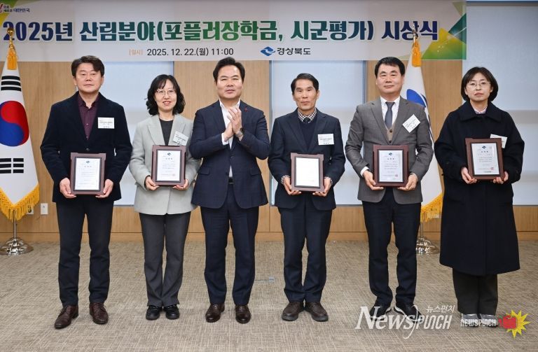 뉴스펀치 김길룡 기자 | 예천군은 22일에 열린 ‘2025년 경상북도 산림분야 기관평가 시상식’에서 산림행정 2개 부문(산림정책, 산림소득 분야)에서 모두 ‘장려’를 수상했다고 밝혔다.