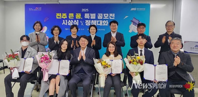 뉴스펀치 정홍균 기자 | 전주시정연구원(원장 박미자)은 22일 연구원 회의실에서 ‘2025 전주 큰 꿈 특별 공모전 시상식 및 정책 대화’를 개최했다.