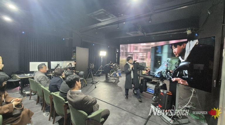 먼저 1부 ‘버추얼프로덕션 기술시연회’는 진흥원 IT벤처센터 2층 교육용 버추얼스튜디오 ‘엣지스테이지’에서 진행됐으며, 국내 대표 VFX 기업인 ㈜웨스트월드가 참여해 △LED 월 기반 버추얼스튜디오 △실시간 렌더링 △카메라 트래킹 △가상환경 합성 등 버추얼프로덕션 핵심 기술을 실제 제작 환경과 동일한 조건에서 시연했다.