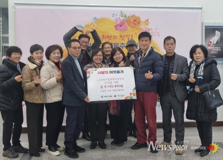 뉴스펀치 김길룡 기자 | ‘의왕시 고천동 9개 사회단체연합’이 12월 19일 고천동 어울림축제 수익금 8,140,850원을 전달했다.