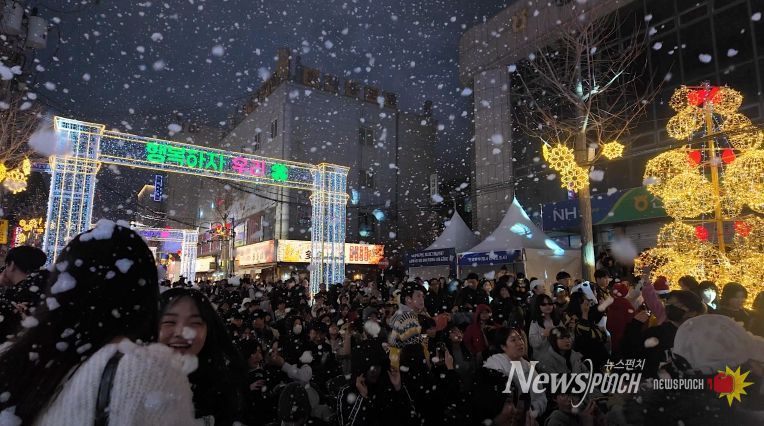 뉴스펀치 김길룡 기자 | 거제시 고현 빛의 거리에서 열린 ‘고현 리본(Re-born), 첫눈 페스티벌’이 많은 시민과 관광객의 참여 속 성황리에 개최되며, 겨울철 도심 상권 활성화 가능성을 확인했다.