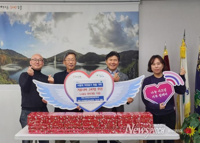 뉴스펀치 김길룡 기자 | 포천시 소흘읍 행정복지센터는 지난 22일, 한마음교회와 ㈜마른파이브가 지역 내 취약계층을 돕기 위한 겨울 내복 240벌을 기탁했다고 밝혔다.