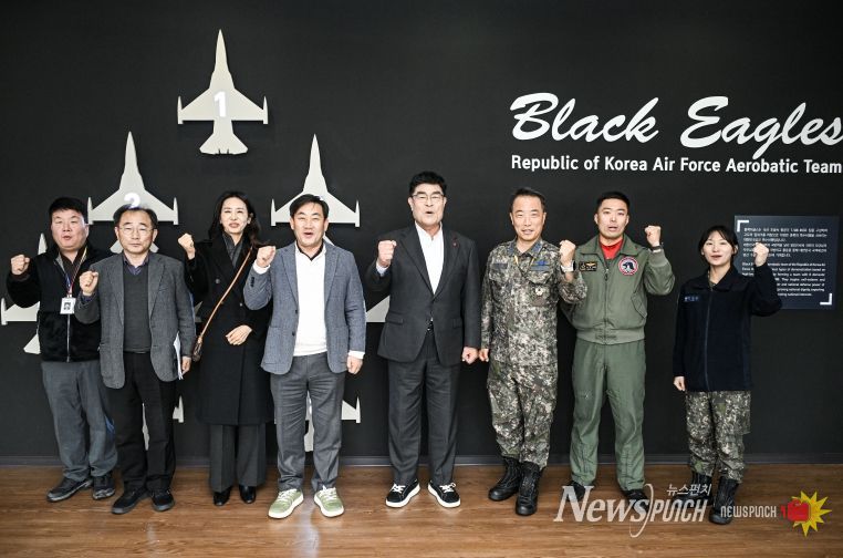 뉴스펀치 김길룡 기자 | 삼척관광문화재단(이사장 박상수)이 삼척의 주요 축제에서 화려한 에어쇼로 시민과 관광객들에게 잊지 못할 감동을 선사한 대한민국 공군 특수비행팀 ‘블랙이글스’를 직접 찾아 감사의 뜻을 전했다.