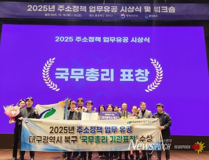 뉴스펀치 조평훈 기자 | 대구 북구청은 2025년 주소정책을 성공적으로 추진한 공로를 인정받아 국무총리 기관 표창을 수상했다.
