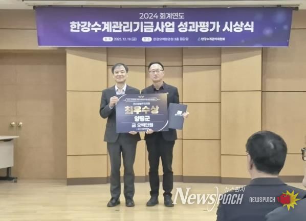 뉴스펀치 김길룡 기자 | 양평군은 지난 19일 한강유역환경청이 실시한 ‘2024년도 한강수계관리기금 성과평가’에서 주민지원사업 부문 최우수, 오염총량관리사업 부문 장려를 수상했다고 밝혔다.