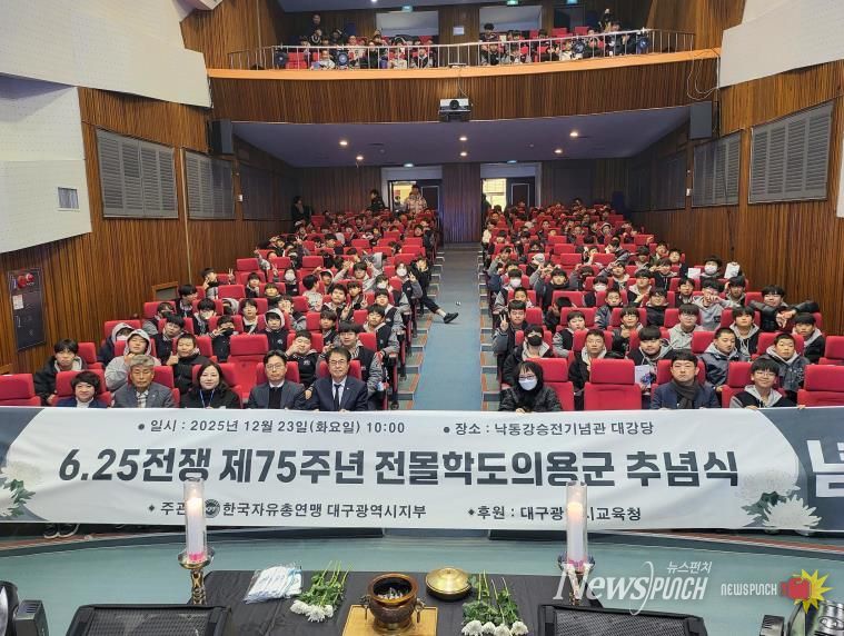 뉴스펀치 조평훈 기자 | 한국자유총연맹 대구광역시지부는 지난 12월 23일 낙동강승전기념관 대강당에서 ‘6.25 전쟁 제75주년 학도의용군 추념식’을 개최했다.