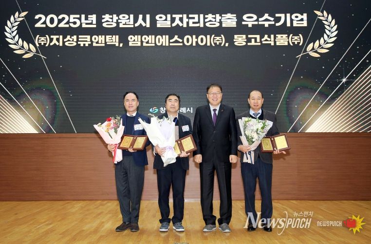 뉴스펀치 김길룡 기자 | 창원특례시는 23일 어려운 경제 여건에도 지역 일자리 창출을 위해 노력한 3개 기업을 ‘2025년 일자리창출 우수기업’으로 선정하고 표창패를 수여했다고 밝혔다.