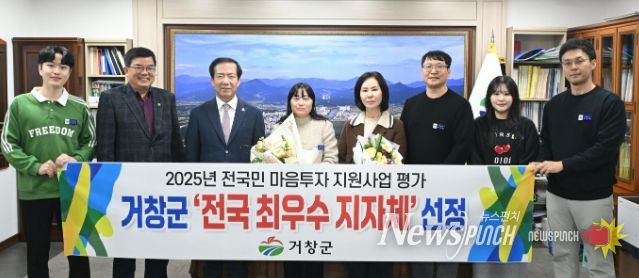 뉴스펀치 김길룡 기자 | 거창군은 보건복지부가 주관하는 ‘전국민 마음투자 지원사업’ 평가에서 전국 최우수 지자체로 선정됐다고 지난 23일 밝혔다.