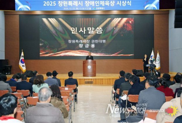 뉴스펀치 김길룡 기자 | 창원특례시는 23일 시청 시민홀에서 ‘2025 창원특례시 장애인체육상 시상식’을 개최했다.