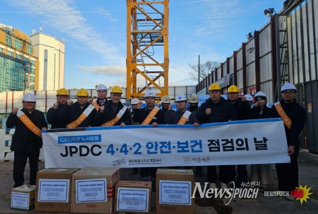뉴스펀치 김길룡 기자 | 제주특별자치도개발공사(사장 백경훈)는 지난 23일 겨울철 한파로 인한 건설현장 근로자의 안전사고를 예방하고, 안전한 작업 여건을 조성하기 위해 혹한기 한랭질환 예방활동과 CEO 주관 노사합동 4·4·2 안전점검을 실시했다.