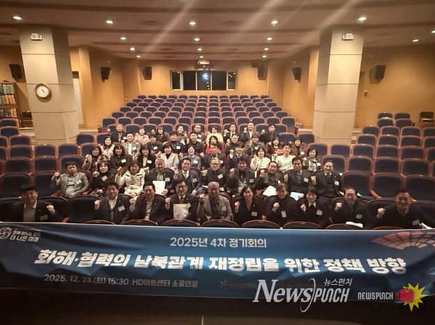 뉴스펀치 김길룡 기자 | 민주평화통일자문회의 울산동구협의회(회장 장예식)는 12월 23일 오후 3시 30분 HD아트센터 소공연장에서 자문위원 등 50여 명이 참석한 가운데 ‘화해·협력의 남북 관계 재정립을 위한 정책 방향’을 주제로 2025년 4차 정기 회의를 개최했다.