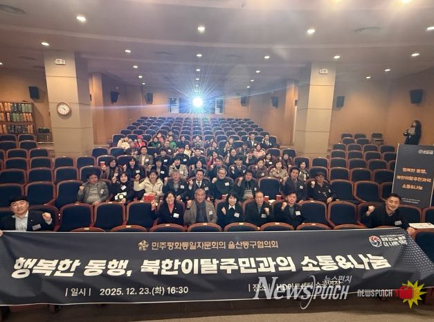뉴스펀치 김길룡 기자 | 민주평화통일자문회의 울산동구협의회(회장 장예식)는 12월 23일 오후 4시 30분 HD아트센터 소공연장에서 북한이탈주민의 안정적인 지역 사회 정착을 지원하기 위하여 ‘북한이탈주민과의 소통 나눔’ 행사를 개최했다.