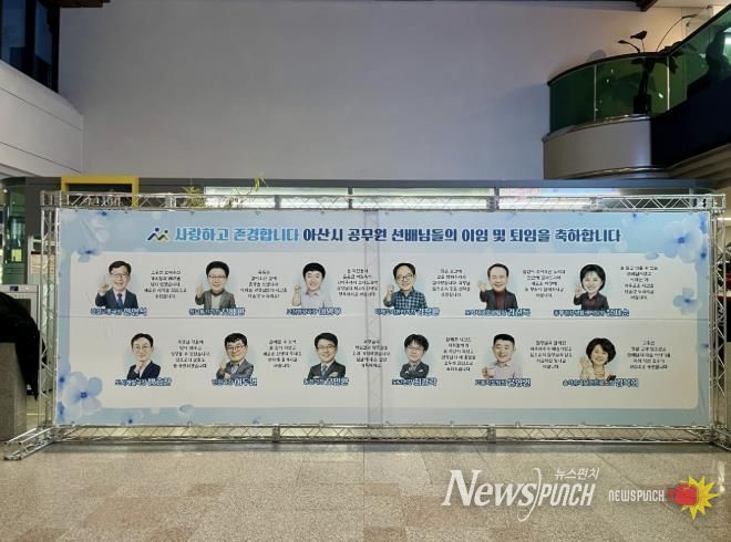 뉴스펀치 김길룡 기자 | 아산시는 오는 30일 열리는 2025년 하반기 공무원 퇴임식을 앞두고, 12월 23일부터 30일까지 시청 1층 로비에서 퇴직 공무원과 공무직을 위한 기획전시 ‘제2회 영예의 얼굴들’을 운영한다.