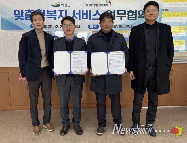 뉴스펀치 김길룡 기자 | 예산군 삽교읍은 (사)두리장애인복지회와 지난 22일 삽교읍 행정복지센터에서 관내 취약계층 지원을 위한 상호 협력 업무협약을 체결했다.