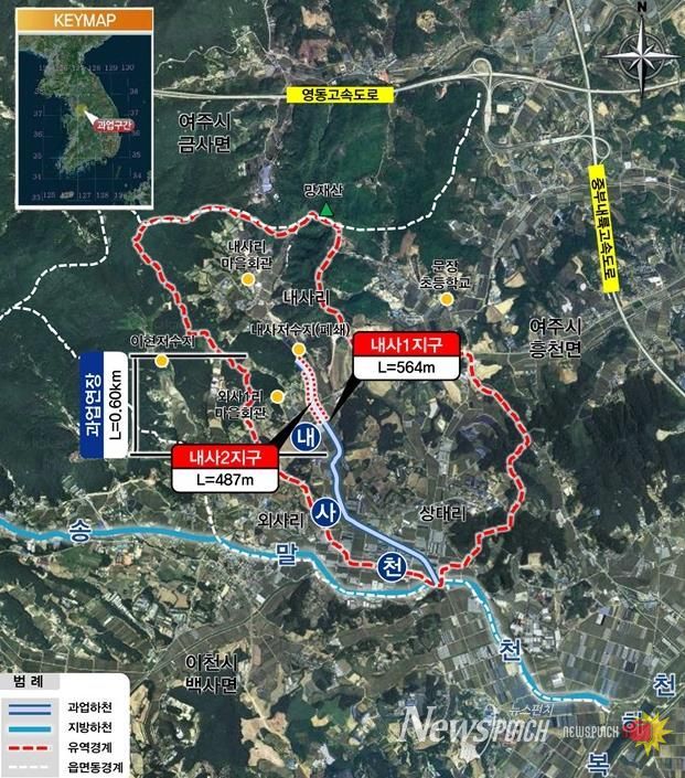 정비사업은 여주시 흥천면 내사리 일원 총 연장 0.6km 구간의 하천을 정비(하폭 6~14 → 15~20m)하는 것으로 ▲축제공(제방 쌓기) 1.05km ▲교량 3개 설치 등이 포함된다.