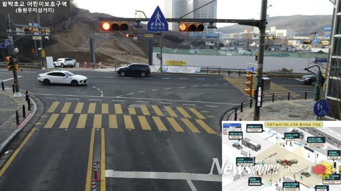 뉴스펀치 김길룡 기자 | 용인특례시는 처인구 역북동 함박초등학교 앞 어린이보호구역에 인공지능(AI) 기반 ‘스마트 횡단보도 시스템’을 구축하고, 본격 운영을 시작했다고 24일 밝혔다.