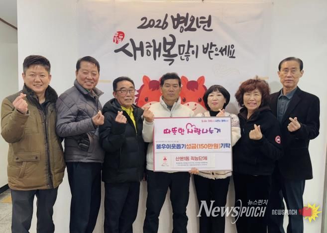 뉴스펀치 김길룡 기자 | 군포시 산본1동 직능단체는 지난 22일 연말을 맞아 관내 소외계층을 돕기 위한 후원금 150만 원을 기탁했다.