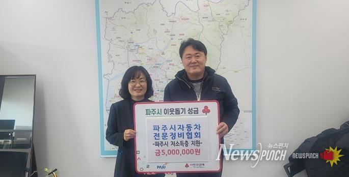 뉴스펀치 김길룡 기자 | 파주시는 지난 22일, 파주시자동차전문정비협회가 파주시청을 방문하여 관내 취약계층을 위해 써달라며 현금 5백만 원을 기탁했다고 밝혔다.