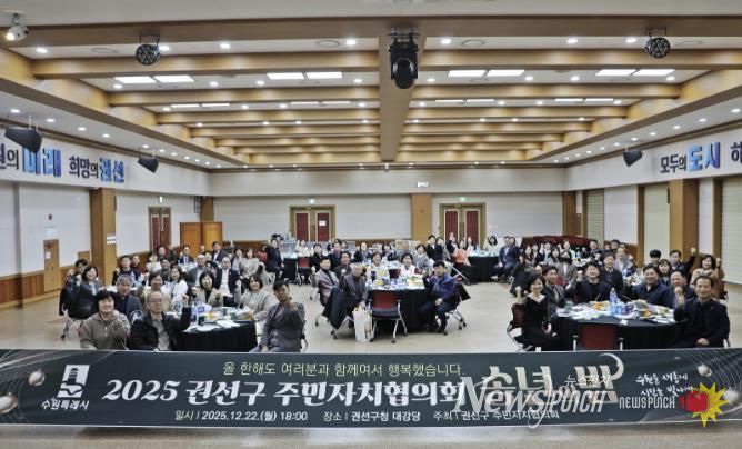뉴스펀치 김길룡 기자 | 권선구 주민자치협의회는 2025년 12월 22일 오후 6시, 권선구청 대회의실에서 '2025 권선구 주민자치협의회 송년회'를 개최했다.