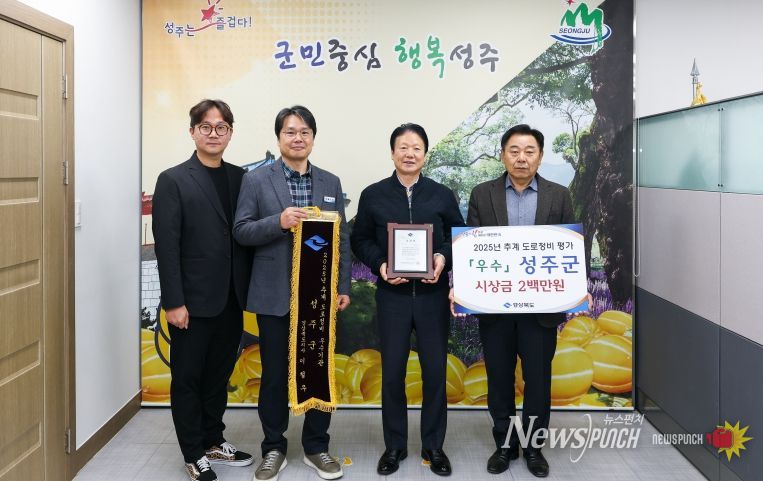 뉴스펀치 김길룡 기자 | 성주군은 경상북도에서 실시한 2025년 추계 도로정비(시·군도) 평가에서 ‘우수상’을 수상하고, 도지사 기관표창과 함께 포상금 200만원을 받았다고 밝혔다.
