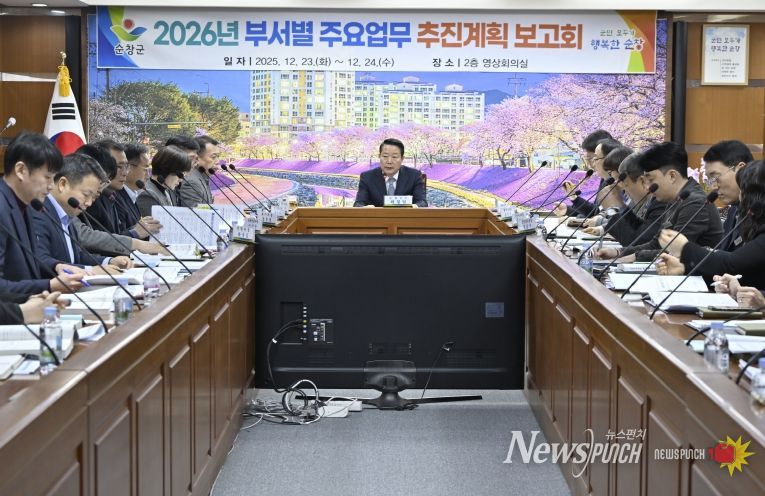 뉴스펀치 정홍균 기자 | 순창군은 지난 23일부터 24일까지 이틀간 영상회의실에서 최영일 군수 주재로 부군수, 국장, 실·과·소장 및 팀장이 참석한 가운데 2026년 부서별 주요업무 보고회를 개최했다고 밝혔다.