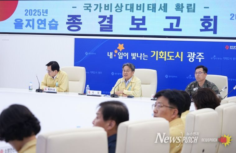 뉴스펀치 김길룡 기자 | 광주광역시는 행정안전부 주관 ‘2025년 비상대비훈련(을지연습)’ 평가에서 유공 기관으로 선정돼 최고등급인 대통령 표창을 수상했다.