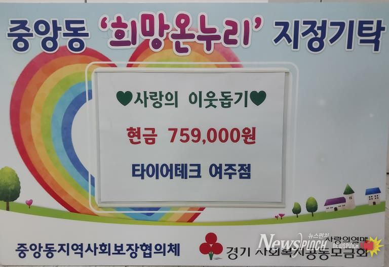 뉴스펀치 김길룡 기자 | 타이어테크 여주점은 지난 23일 연말을 맞아 지역사회 취약계층을 돕기 위해 성금 75만9천원을 중앙동행정복지센터에 기탁했다.