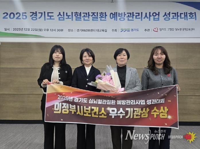 뉴스펀치 김길룡 기자 | 의정부시 보건소는 12월 22일 ‘2025년 경기도 심뇌혈관질환 예방관리사업 성과대회’에서 ‘우수 기관’으로 선정돼 경기도지사 표창을 수상했다.