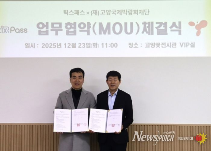 뉴스펀치 김길룡 기자 | (재)고양국제박람회재단은 지난 23일 고양꽃전시관에서 틱스패스 주식회사와 2026고양국제꽃박람회 모바일 입장권 도입을 위한 업무협약을 체결했다고 밝혔다.