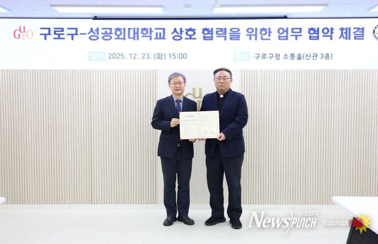 뉴스펀치 김완규 기자 | 구로구는 12월 23일 구청 소통홀에서 성공회대학교와 상호협력을 위한 업무협약을 체결했다고 밝혔다.
