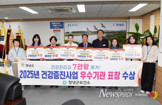 뉴스펀치 김길룡 기자 | 창녕군은 보건소 건강관리과에서 2025년 한 해 동안 중앙부처 및 경상남도 등에서 주관한 각종 사업평가에서 전 팀이 총 7개 분야의 상을 휩쓸며 ‘7관왕’의 영예를 안았다고 24일 밝혔다.