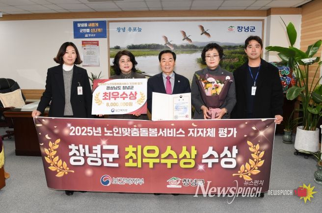 뉴스펀치 김길룡 기자 | 창녕군은 보건복지부 주관 ‘2025년 노인맞춤돌봄서비스 평가’에서 최우수상을 수상했다고 24일 밝혔다.