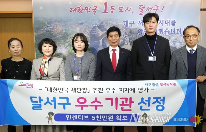 뉴스펀치 조평훈 기자 | 대구 달서구는 행정안전부가 주관한 '대한민국 새단장' 추진 우수 지자체 평가에서 우수기관으로 선정돼 특별교부세 5천만 원을 확보했다.